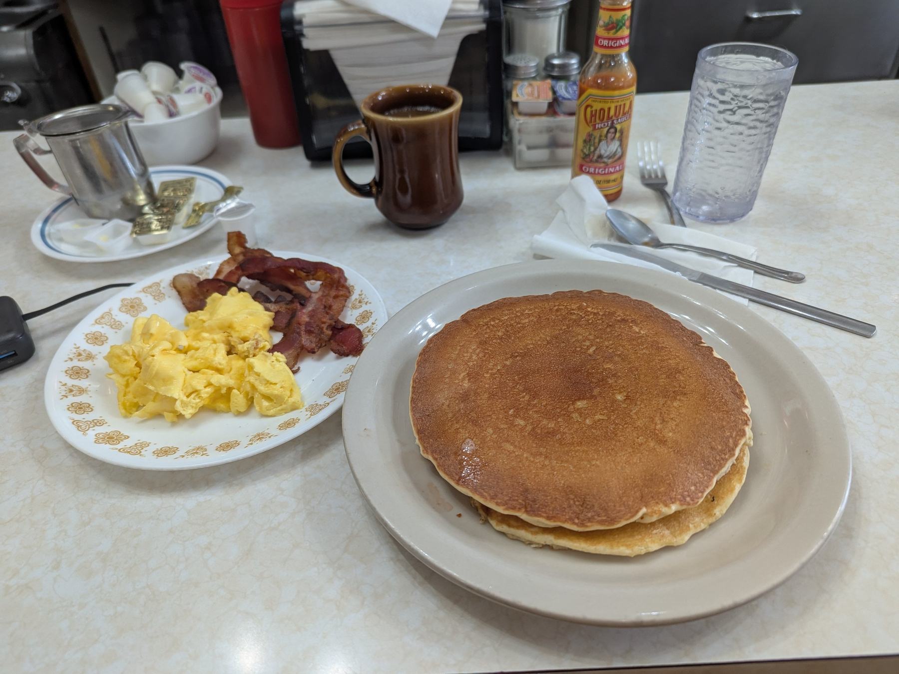 Sitting at Hoagie’s in downtown Hopkins. Great little family diner! It’s about 7-9 miles depending on your route from my place on bike. Took the Minnesota River Bluffs LRT Regional Trail here and looking forward to my short stack and bacon!